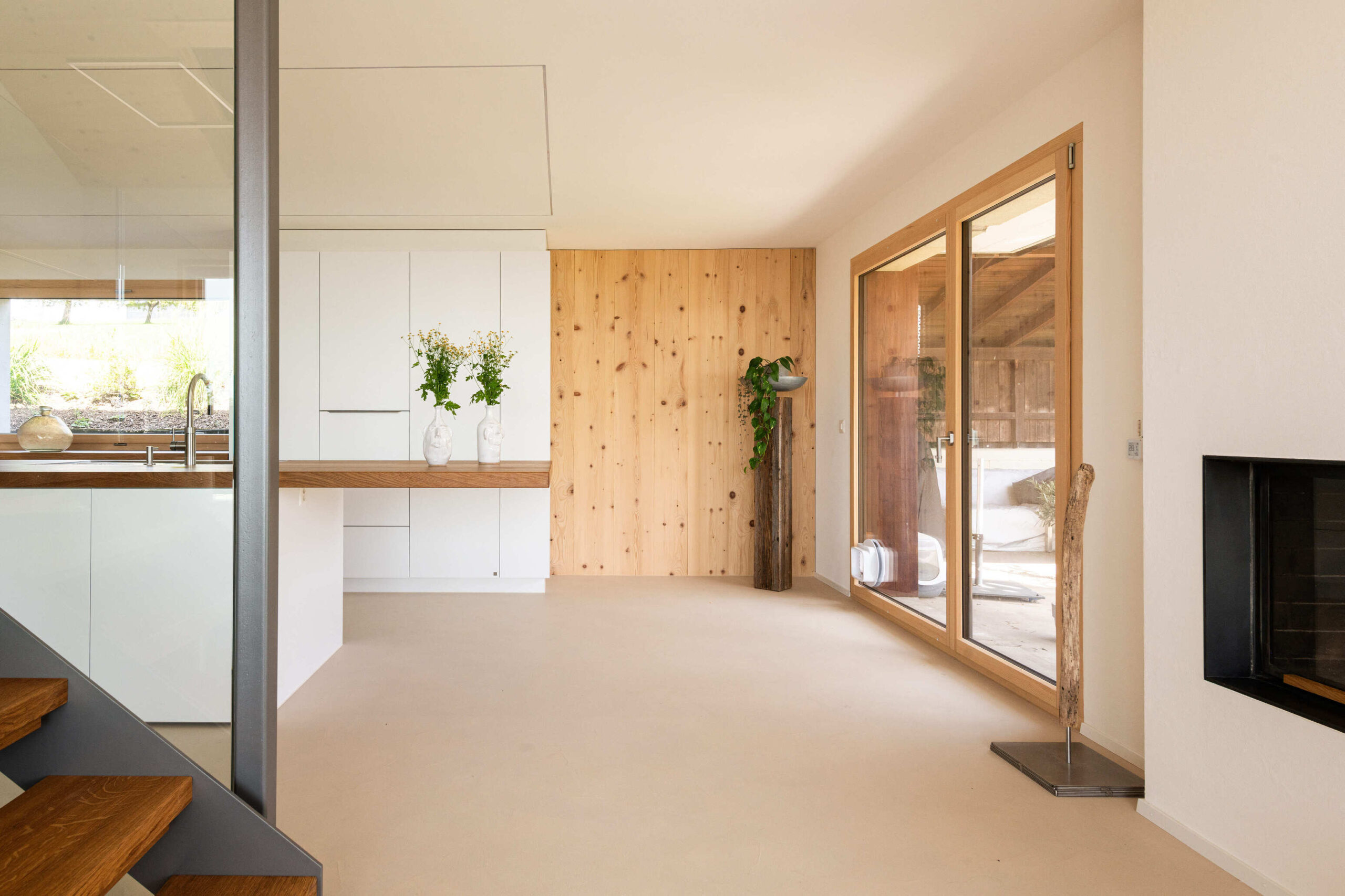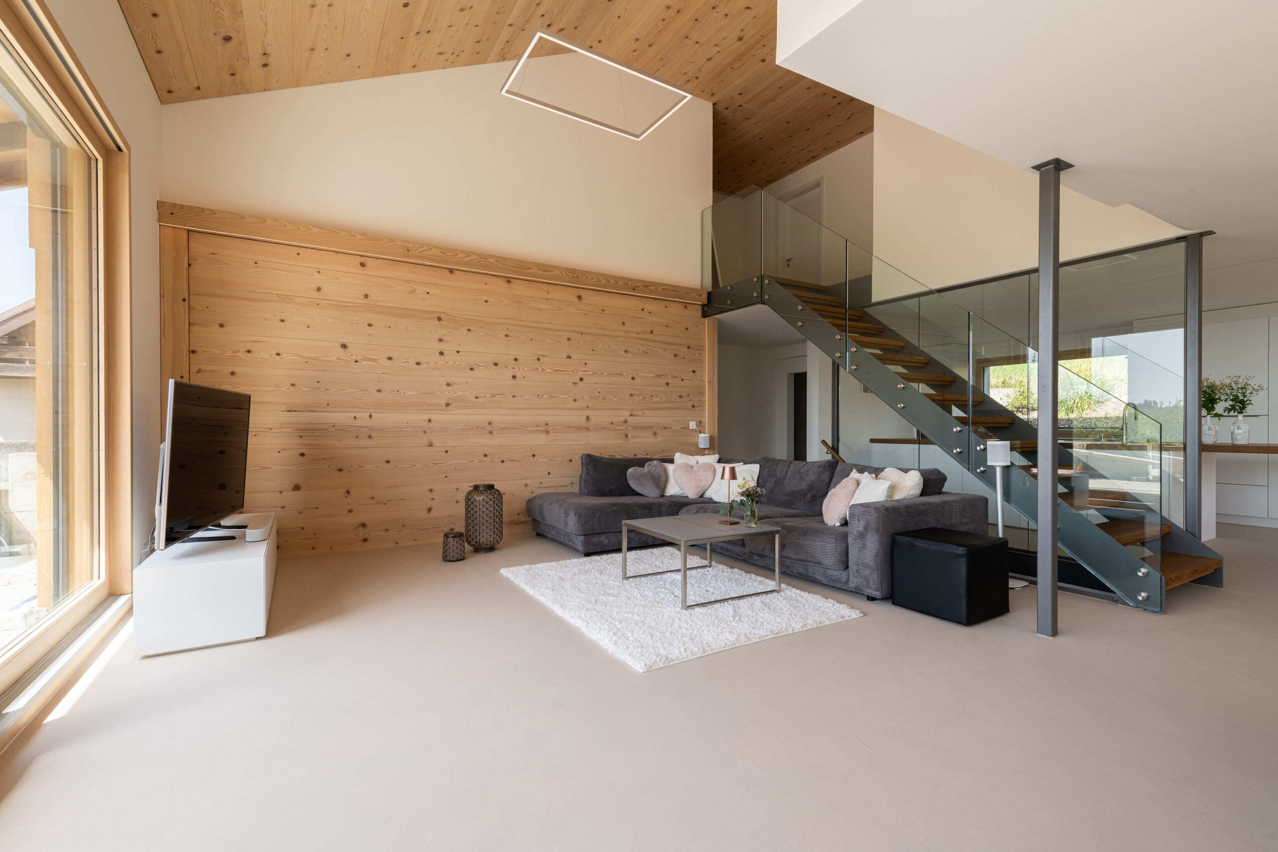 In Madiswil erhielt das Erdgeschoss ein neues Desing mit einem Spachetlbelag im Farbton Beach Sand . Die Küchenrückwand sowie die Wand im Badzimmer wurden mit einem PU-Belag beschichtet.