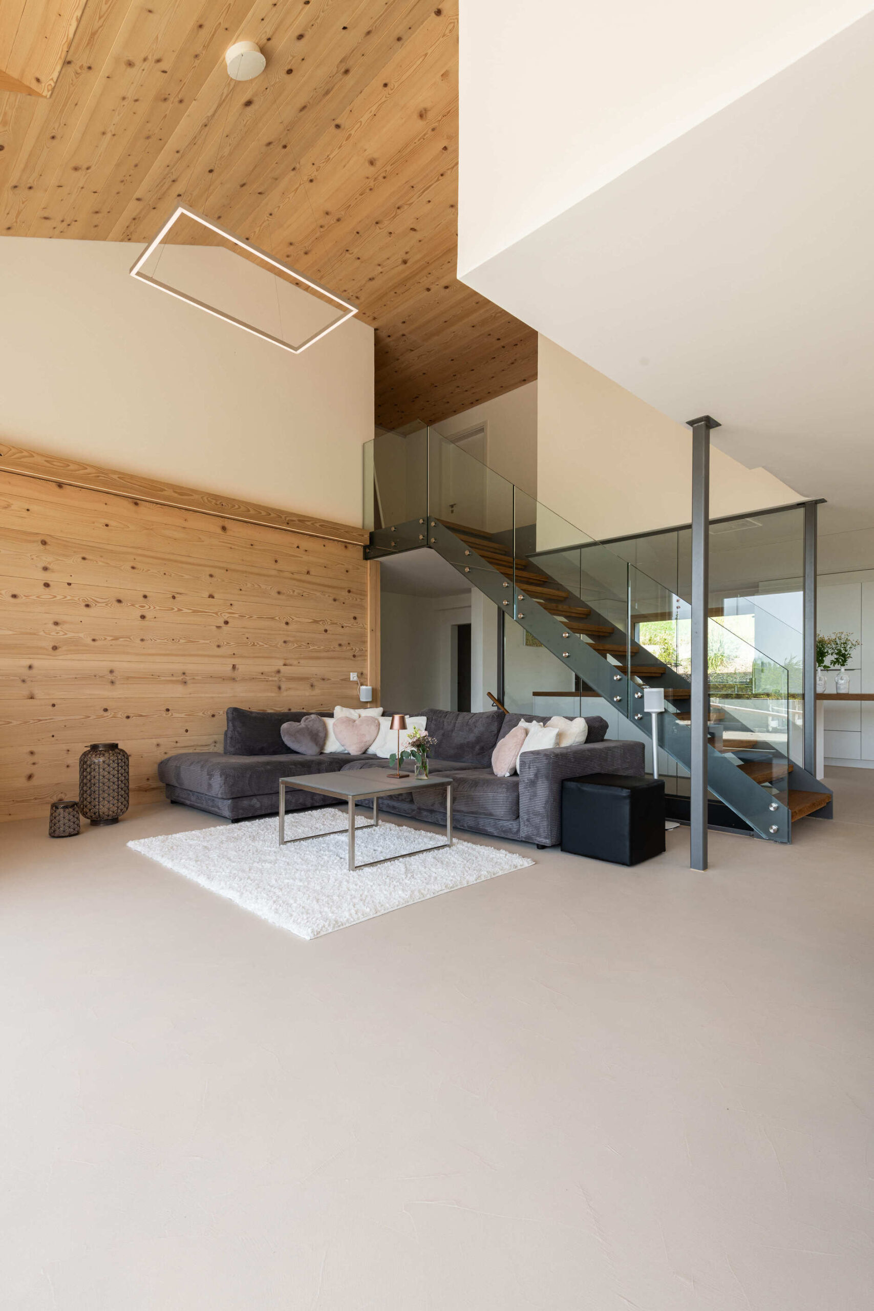 Dank dem warmen NSC Farbton wirkt der Spachtelbelag sehr warm. Die Farbe wurde nach Wunsch eingefärbt und passt sich perfekt in den Raum ein.