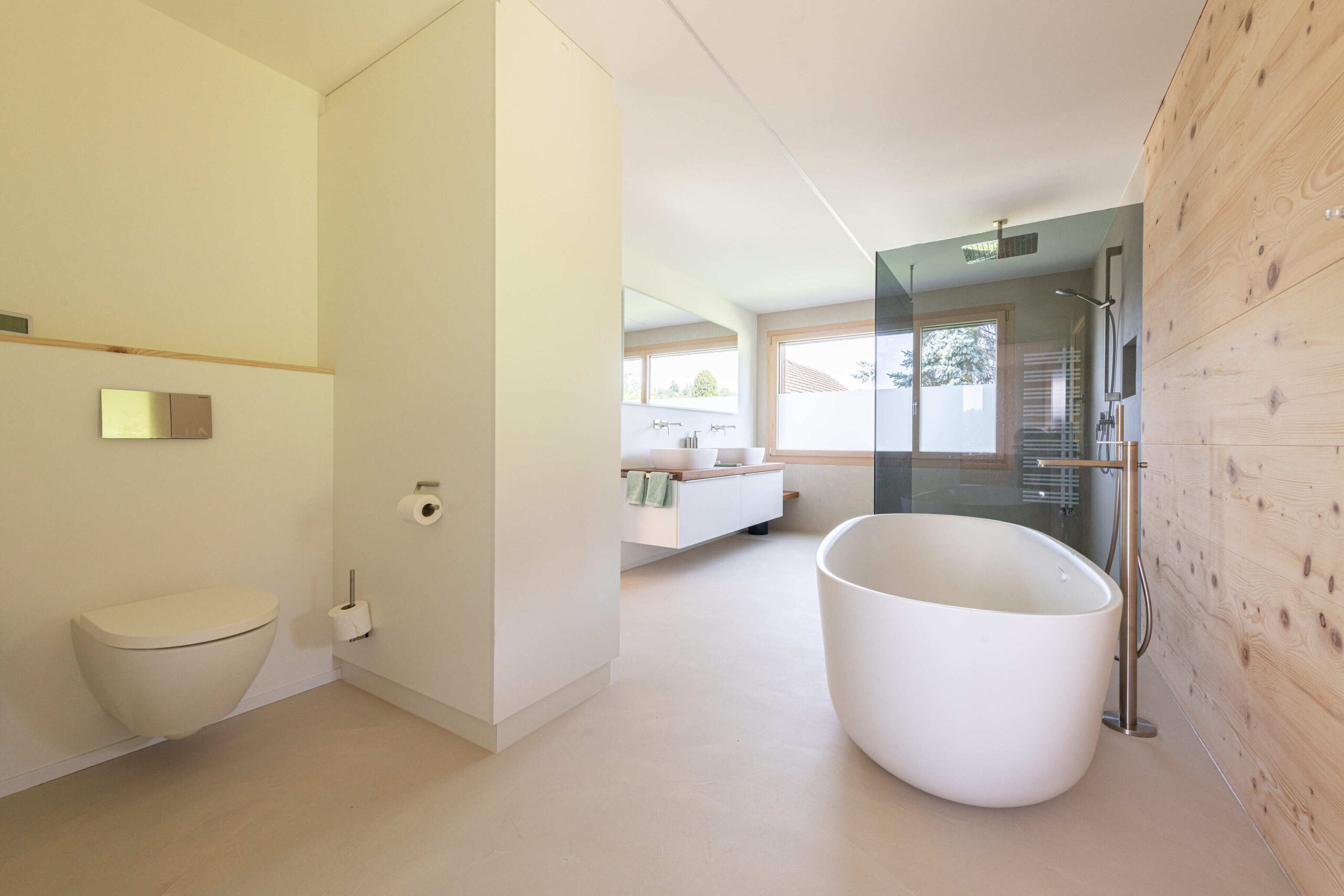 In der Region Emmenthal durften wir im Bereich Badezimmer, Küche und Zwischengang einen Spachtelbelag einbauen.